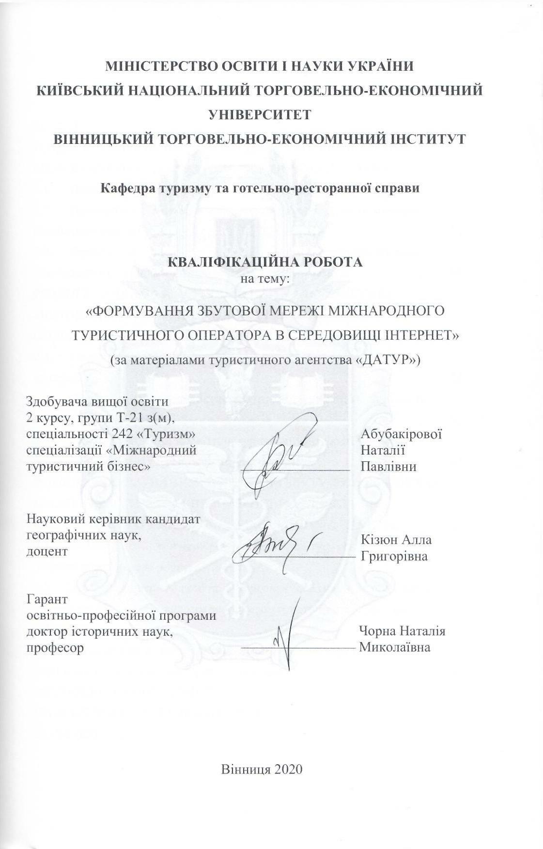 | Назва: | Формування збутової мережі міжнародного туристичного оператора в середовищі Інтернет (за матеріалами туристичного агентства "Датур") |