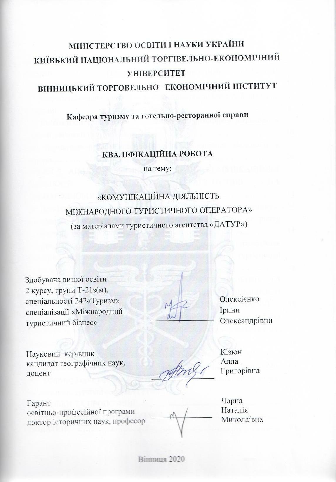 | Назва: | Комунікаційна діяльність міжнародного туристичного оператора (за матеріалами туристичного агентства "Датур") |