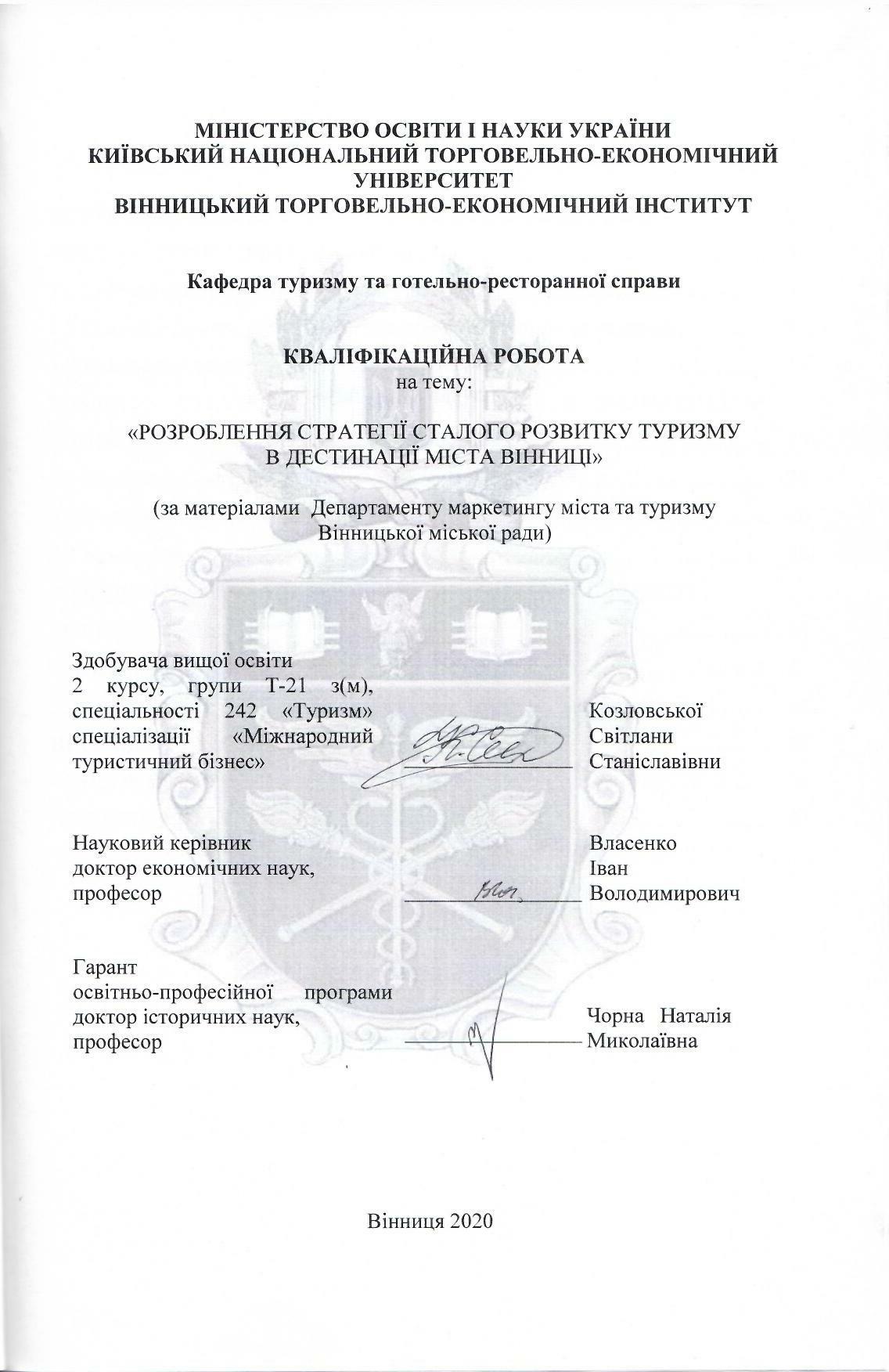 | Назва: | Розробка стратегії сталого розвитку туризму в дестинації міста Вінниці (за матеріалами Департаменту маркетингу міста та туризму Вінницької міської ради) |