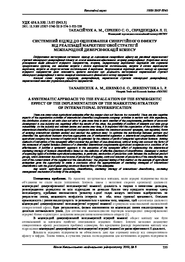 Title: | Системний підхід до оцінювання синергійного ефекту від реалізації маркетингової стратегії міжнародної диверсифікації бізнесу=A systematic approach to the evaluation of the synergistic effect of the implementation of the marketing strategy of international |