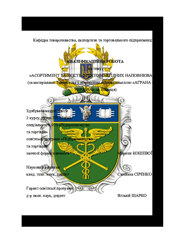 Title: | Асортимент та якість фруктово-ягідних наповнювачів (за матерілами Товариства з обмеженою відповідальністю "Аграна Фрут Україні, м.Вінниця" ) |