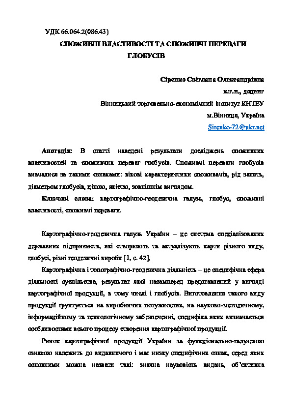 Title: | Споживні властивості та споживчі переваги глобусів |