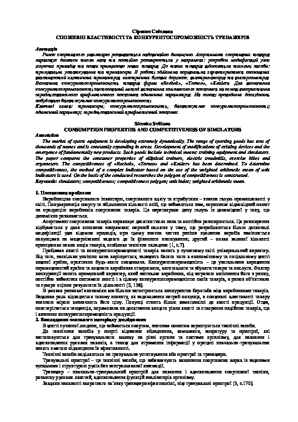 Title: | Споживні властивості та конкурентоспроможність тренажерів = Consumption properties and competitiveness of simulators |
