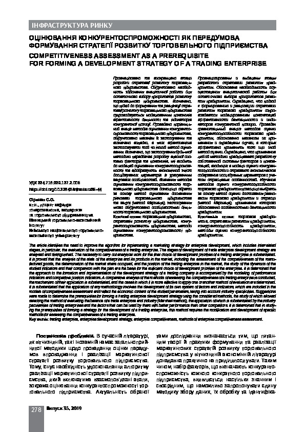 | Назва: | Оцінювання конкурентоспроможності як передумова формування стратегії розвитку торговельного підприємства = Competitiveness assessment as a prerequisite for forming a development strategy of a trading enterprise |
