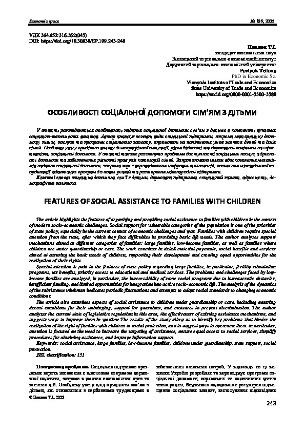 | Назва: | Особливості соціальної допомоги сім’ям з дітьми = Features of social assistance to families with children |