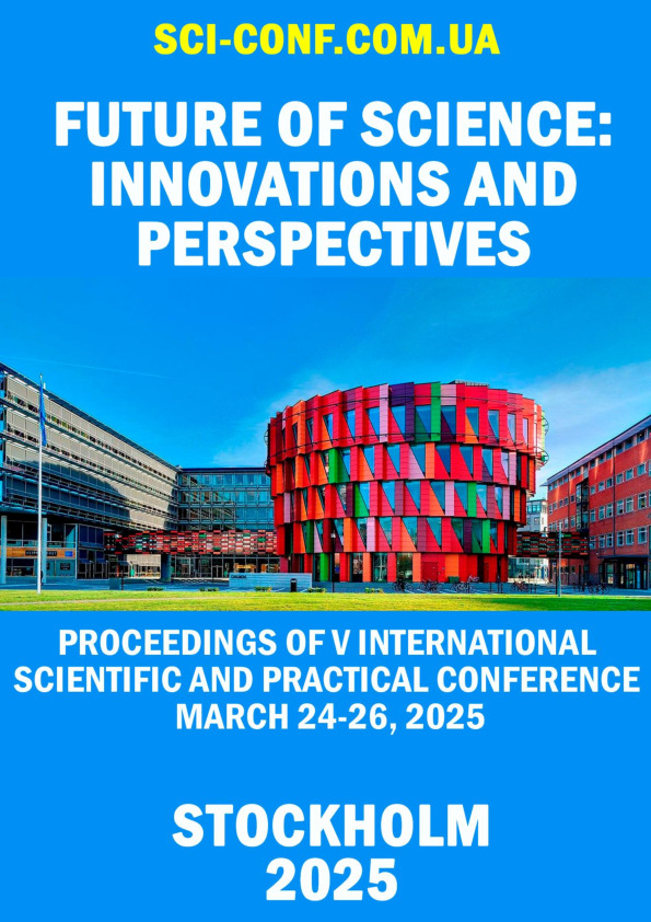 | Видавництво: | Future of science: innovations and perspectives : Proceedings of the 25nd International Scientific and Practical, Stockholm 24-26 March, 2025, Stockholm, Sweden : SPC «Sci-conf.com.ua», 2025. Р.370-377. URL : https://sci-conf.com.ua/wp-content/uploads/2025/03/FUTURE-OF-SCIENCE-INNOVATIONS-AND-PERSPECTIVES-24-26.03.25.pdf |
