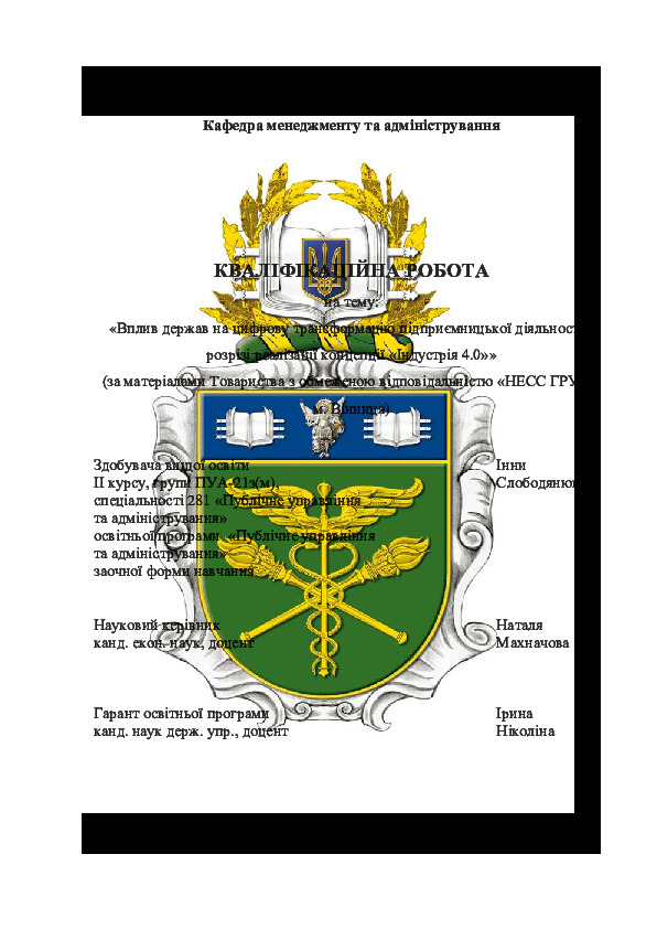 Title: | Вплив держав на цифрову трансформацію підприємницької діяльності в розрізі реалізації концепції «Індустрія 4.0» (за матеріалами ТОВ «НЕСС ГРУП», м. Вінниця) |