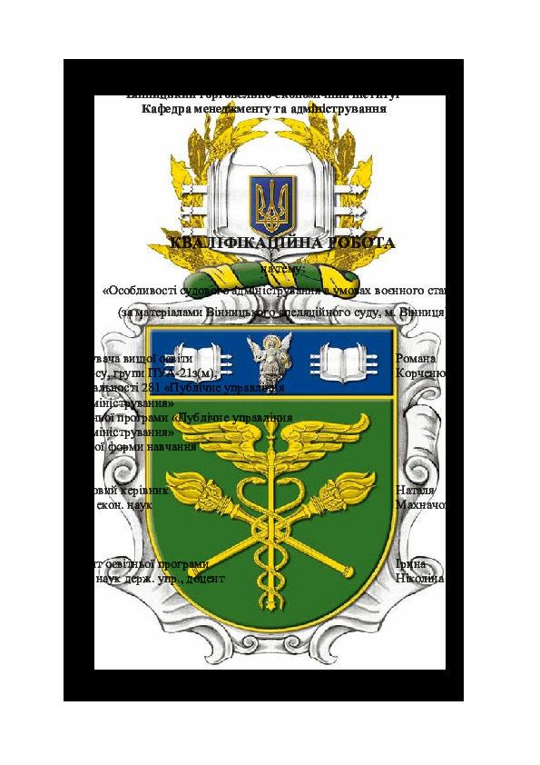 Title: | Особливості судового адміністрування в умовах воєнного стану (за матеріалами Вінницького апеляційного суду, м. Вінниця) |