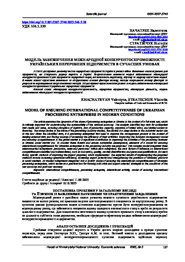 | Назва: | Модель забезпечення міжнародної конкурентоспроможності українських переробних підприємств в сучасних умовах |