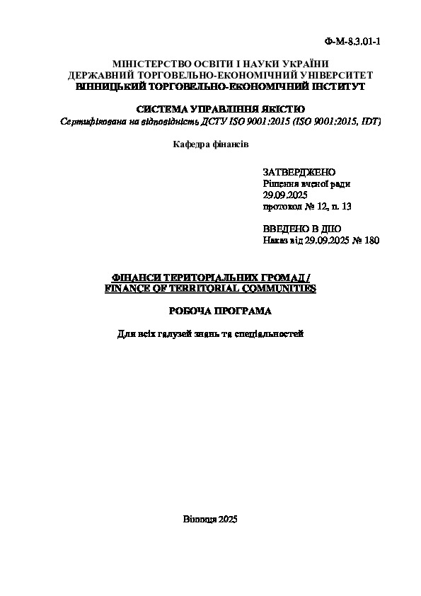 | Publication: | : робоча програма. Вінниця : Редакційно-видавничий відділ ВТЕІ ДТЕУ, 2025. 29 с. |