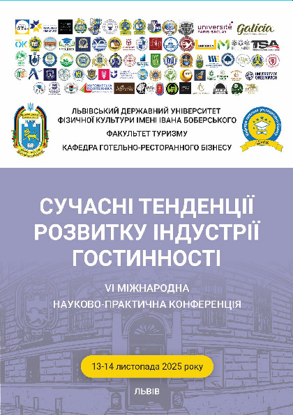 | Видавництво: | Сучасні тенденції розвитку індустрії гостинності : зб. тез доп. VI Міжнар. наук.-практ. конф. (13–14 листопада 2025 року, м. Львів). Львів: ЛДУФК ім. Івана Боберського, 2025. |