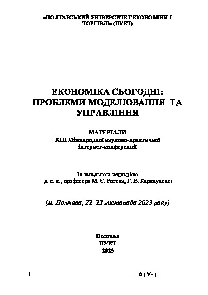 | Видавництво: | ХІІІ Міжнародної науково-практичної інтернет-конференції. За загальною редакцією д. е. н., професора М. Є. Рогози, Г. В. Карнаухової (м. Полтава, 22–23 листопада 2023 року). Полтава: ПУЕТ. С .207-212. URL : http://www.ek.puet.edu.ua/files/conf2023.pdf |