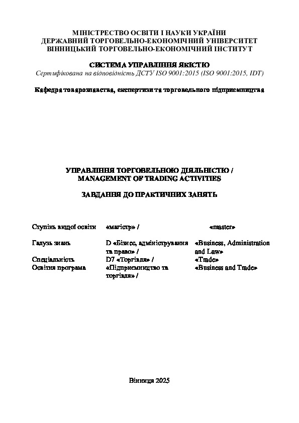 | Назва: | Управління торговельною діяльністю = Management of trading activities |