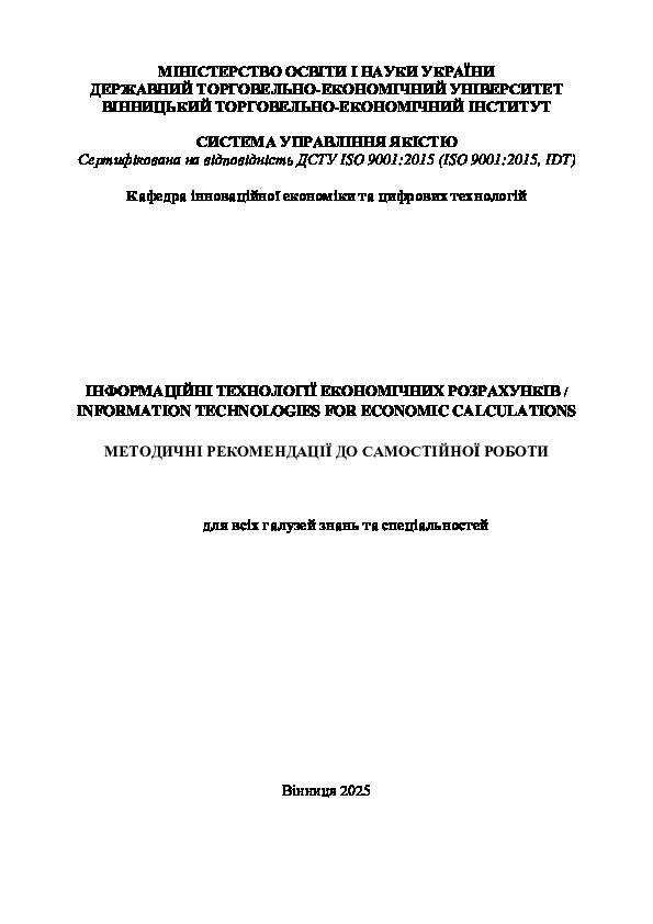 | Назва: | Інформаційні технології економічних розрахунків = Information technologies for economic calculations |