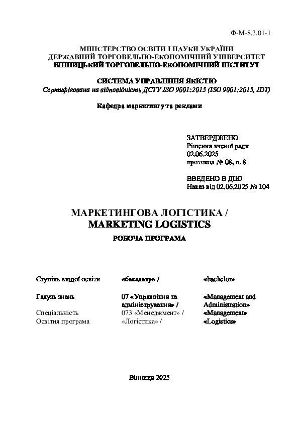 | Назва: | Маркетингова логістика = Marketing logistics |