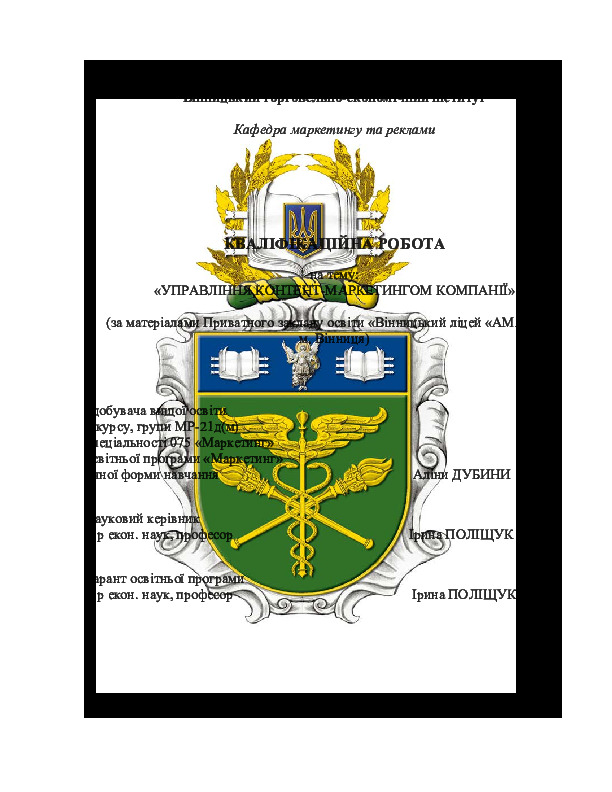 | Назва: | Управління контент-маркетингом компанії (за матеріалами Приватного закладу освіти «Вінницький ліцей «АМАДЕЯ», м. Вінниця) |