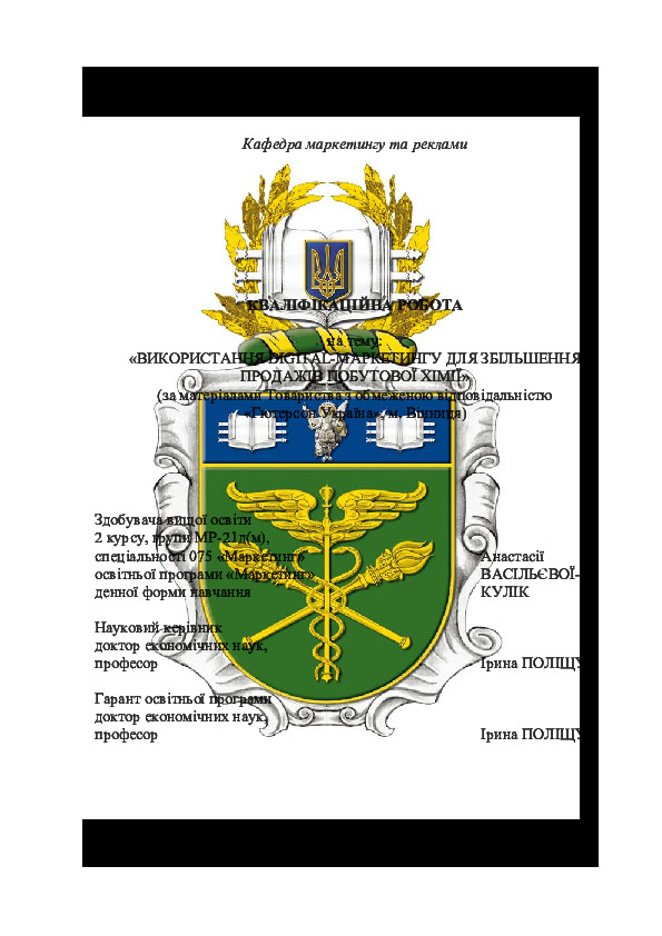 | Назва: | Використання digital-маркетингу для збільшення продажів побутової хімії (за матеріалами Товариства з обмеженою відповідальністю «Гютерсон Україна», м. Вінниця) |