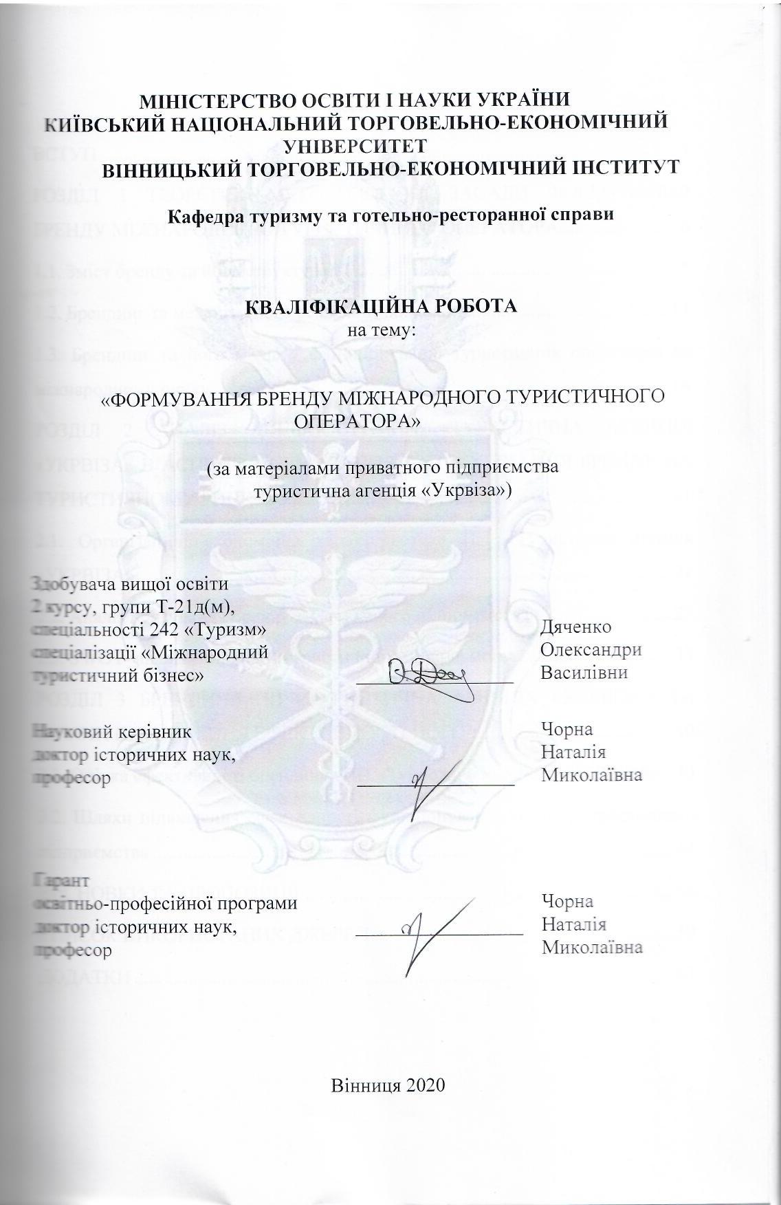 Формування бренду міжнародного туристичного оператора (за матеріалами приватного підприємства туристична агенція "Укрвіза") |